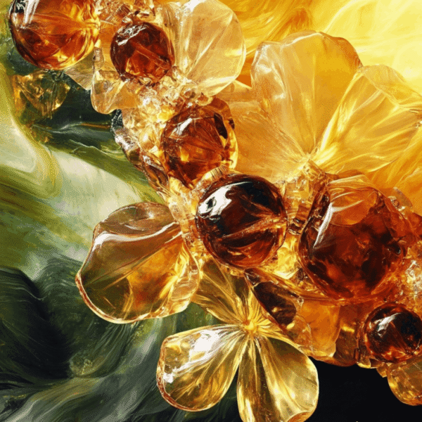 Apreciación técnica: Fusión de hiperrealismo y textura orgánica, con una paleta cálida que evoca la translucidez del ámbar y su riqueza natural.
