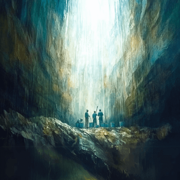 Autor: Silvana Gidoni de Minaya Técnica: Creación conceptual digital Material: Impresión sobre Canvas calidad museo Dimensiones: 32 x 48 pulgadas Mensaje: La majestuosidad de una mina de Larimar capturada en su esencia más pura. La luz se filtra desde la superficie, iluminando el arduo trabajo de los mineros en la búsqueda de esta piedra preciosa única en el mundo. Un homenaje a la dedicación y la conexión entre el hombre y la tierra. Apreciación técnica: Profundidad lograda con contrastes de luz y textura pictórica. La combinación de tonos azules y terrosos enfatiza la atmósfera mística y realista del entorno. Ubicación ideal: Espacios de contemplación y apreciación cultural. Colección La Frisona - Pieza N° 04