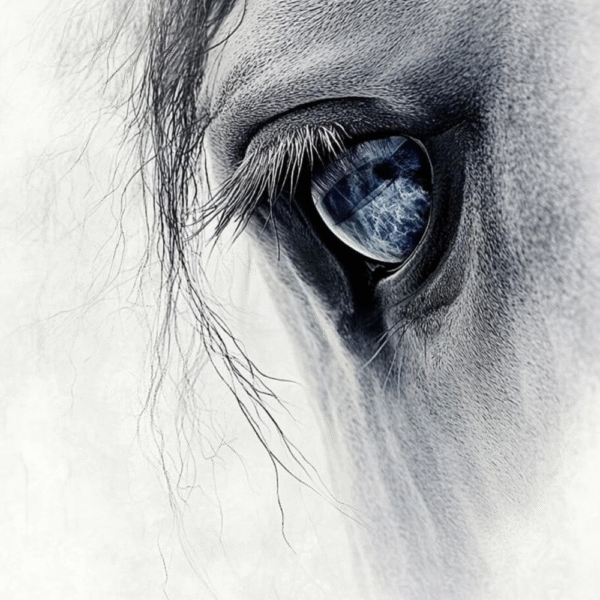 Mensaje: La mirada del caballo es un reflejo de nobleza, fuerza y libertad. Su profundidad invita a descubrir un universo íntimo y eterno.